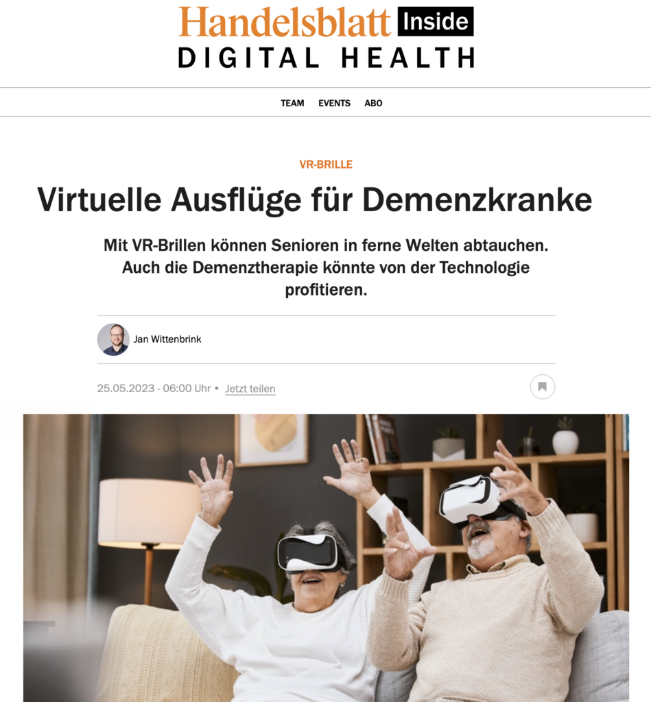 Welche Vorteile kann Virtual Reality für Menschen im Alter bedeuten? Das Handelsblatt hat in diesem Zusammenhang von RemmyVR und unserem Programm an virtuellen Ausflügen berichtet.